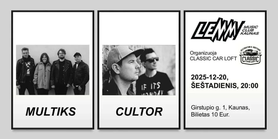 2025 m. gruodžio 20 d., šeštadienį, 20:00 val. Kauno „Lemmy“ muzikos klube laukia ypatingas elektroninės muzikos vakaras – synthpop ir electropop energiją sujungs dvi scenos grupės: „Cultor“ ir „Multiks“.