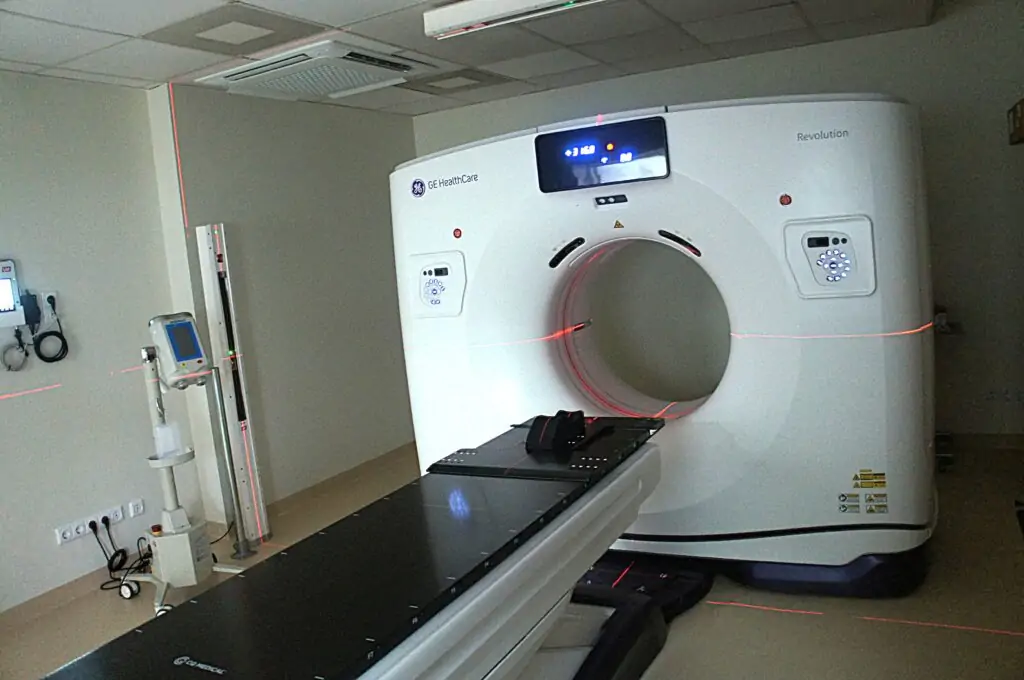 Atliekant KT pradėtas naudoti kontrastinės medžiagos injektorius. Kontrastinė medžiaga leidžia aiškiau įvertinti naviko ribas.